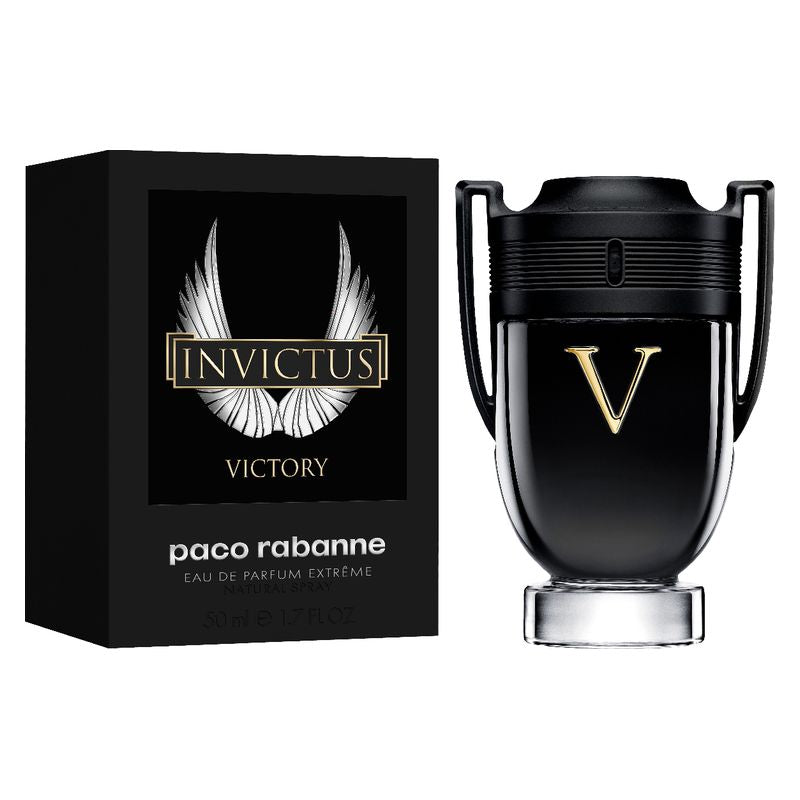 Invictus Victory è l’essenza della competizione portata all’estremo. Un profumo intenso e deciso, che incarna la potenza e la determinazione dell’uomo moderno. L’iconico flacone a forma di trofeo si veste di nero lucido e oro, simbolo di eleganza e trionfo.